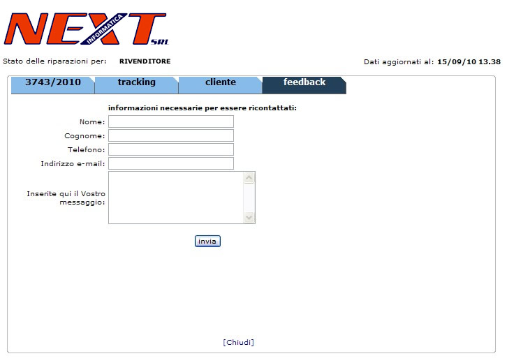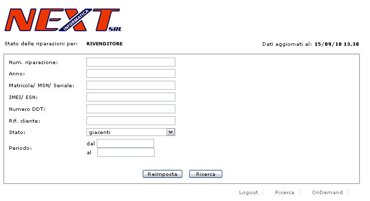 Il Cliente rivenditore potrà accedere alle informazioni relative ai propri apparecchi riparazione tramite un Nome Utente e una propria Password che saranno forniti dal centro che offre il servizio.