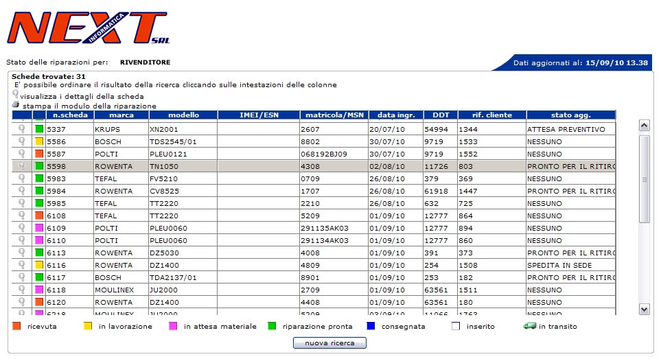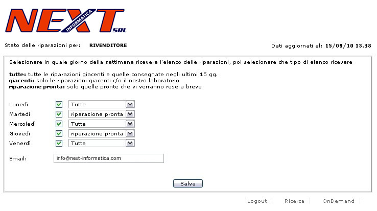 - Sistema Mailist qualora il rivenditore lo desideri, può ricevere in automatico una email contenente la situazione delle riparazioni...