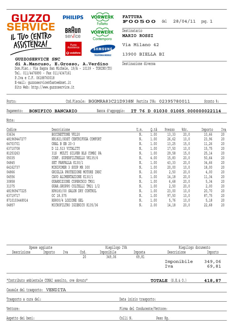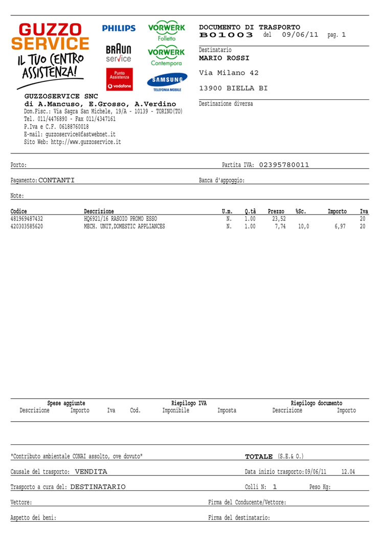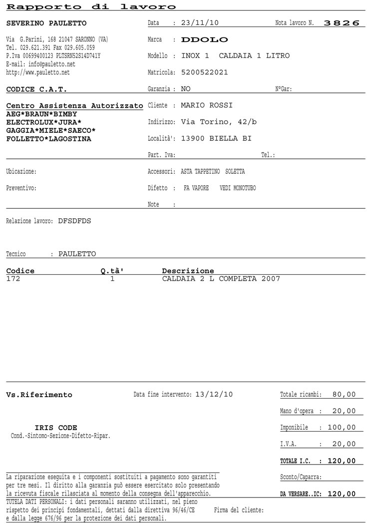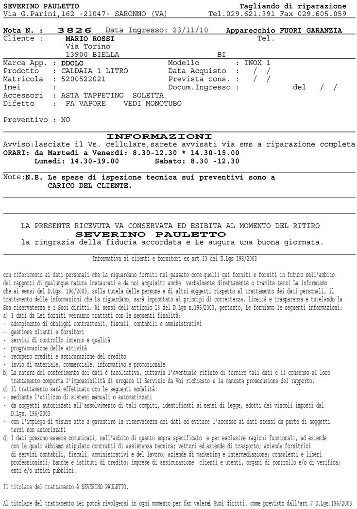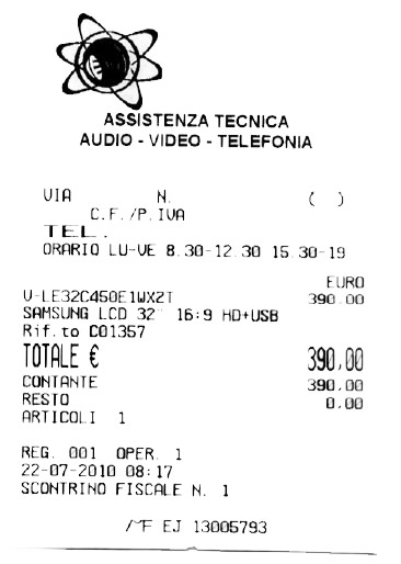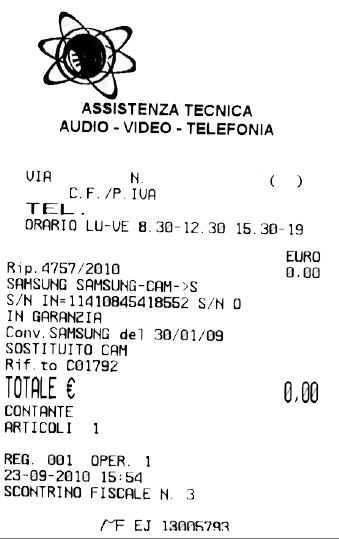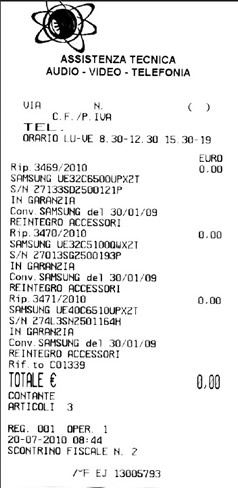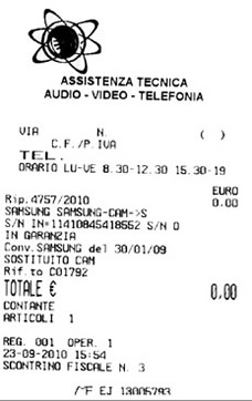 Riguarda l’emissione di scontrini a fronte di riparazioni sia a pagamento che in garanzia. In questi ultimi casi sullo scontrino