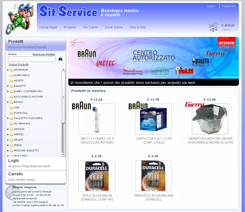 L’attuale modulo e-commerce prevede la completa integrazione di Gesat per quanto riguarda la gestione di prezzi e dati anagrafici.